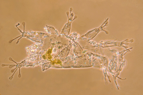 Ausnahmsweise wollen wir hier mit Batillipes sp. nicht lediglich eine bestimmte Art, sondern ein Genus präsentieren (das "sp." steht für eine beliebige Spezies innerhalb des Genus). Angemerkt sei jedoch, dass genauso gut Batillipes mirus, die am längsten bekannte Batillipes-Art, als Primus inter pares im Titel stehen könnte. Mit der Entdeckung dieses bizarren Wesens im Jahr 1909 ebnete Prof. Ferdinand Richters den vormals holprigen Weg zu vielen neuen, marinen Tardigraden. |
